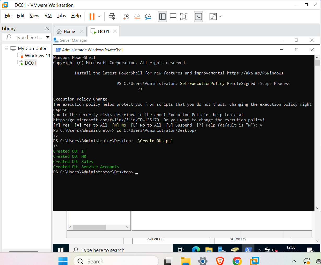 I built and configured a Windows Server domain controller, automated administration with PowerShell, and applied security best practices.