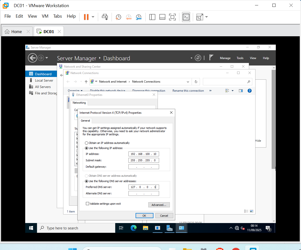 VM Settings | Static IP | AD Installation |